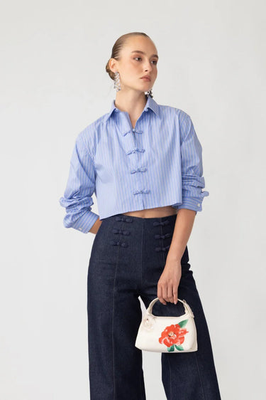 A modern pochette—your perfect companion for just the essentials from day to evening. This limited-edition version of our Apollo series is crafted in satin with a sleek leather handle and features our summer holiday Elba island print.
