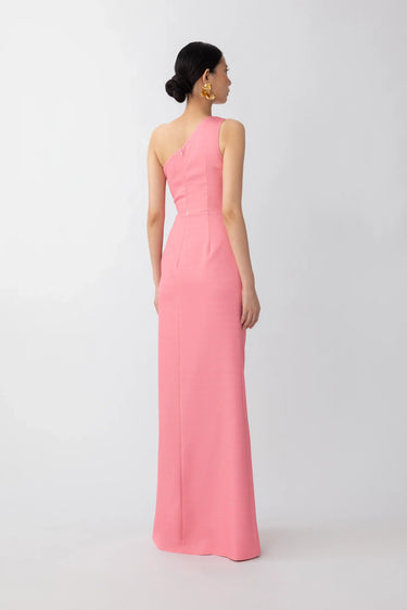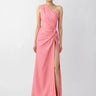 One-shoulder crepe maxi dress with a knot detail and thigh-high slit