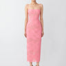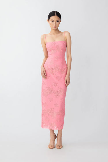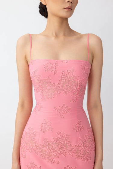 Embroidered midi dress lined with chiffon with laser cut fabric and thin straps