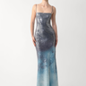 The Melrose Dress is a sequin gown that contours the figure with a backless cut and thin rope straps. Finished with a minimalist silhouette, it offers striking contrast to the shimmering fabric.