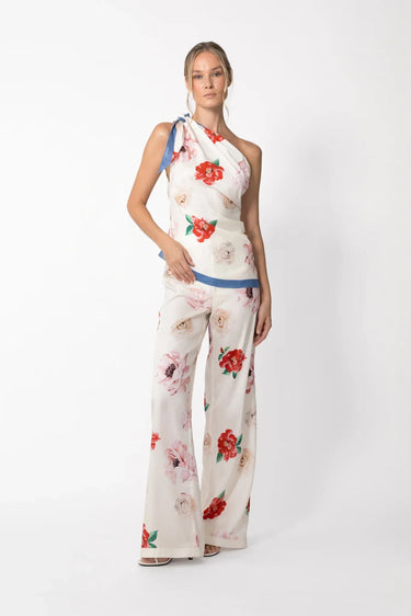 Lightweight satin pant featuring original twill scarf-style print, may be paired with matching top