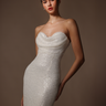 The Linda beaded gown is a floor-length dress crafted from sequin and pearl-beaded fabric. Featuring a built-in structured corset for a flattering fit and a draped sweetheart neckline for a delicate touch.
