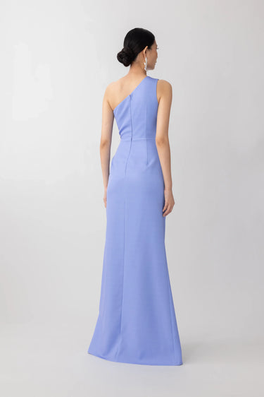 One-shoulder crepe maxi dress with a knot detail and thigh-high slit