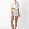 Devi Set features a soft knit button down sheer polo and mini skirt, may be worn as bikini coverup
