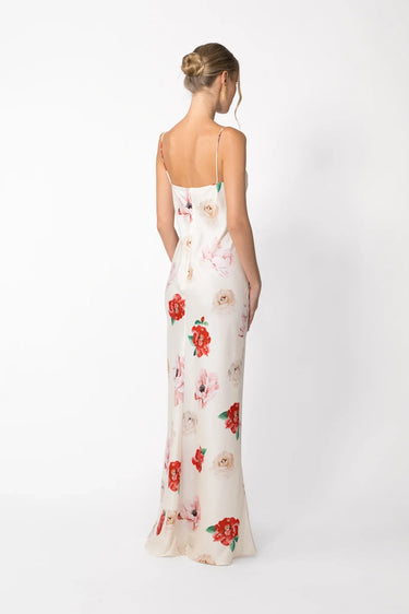 Lightweight satin slip dress in bias-cut fit featuring original twill scarf-style print