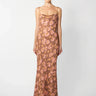 Chiffon printed slip dress in bias-cut fit with attached contrast color satin bralette
