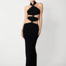 Bodycon cutout midi dress in viscose knit with open back and modified mandarin collar