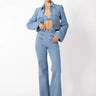The Bambi Jacket is a cropped denim style with flared sleeves and signature hand-tied pipa knots along the front. An indispensable layer for cooler days.