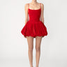 The Miley Dress is a modern ballerina mini, featuring a fitted corset bodice and a softly puffed bubble skirt. Crafted in velvet with hand-tied pipa knots along the front, its clean lines and controlled volume create a playful yet polished silhouette.