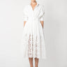 Cotton poplin midi shirtdress with classic mandarin collar, embroidered eyelet detail, and scalloped hem