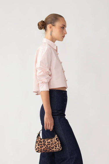 A modern pochette—your perfect companion for just the essentials from day to evening. Crafted in light-weight fabrications featuring varying charming detail with a sleek leather handle.