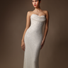 The Linda beaded gown is a floor-length dress crafted from sequin and pearl-beaded fabric. Featuring a built-in structured corset for a flattering fit and a draped sweetheart neckline for a delicate touch.