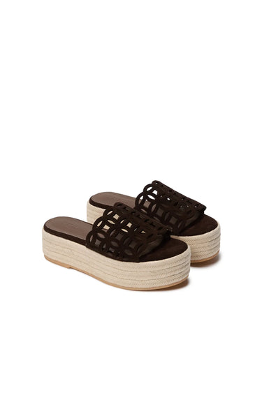 A reimagined summer sandal. Featuring the Ming monogram in a laser cut-out calf suede upper, paired with a natural raffia base for breathability and comfort. Designed to move with you—from city strolls to beachside escapes.